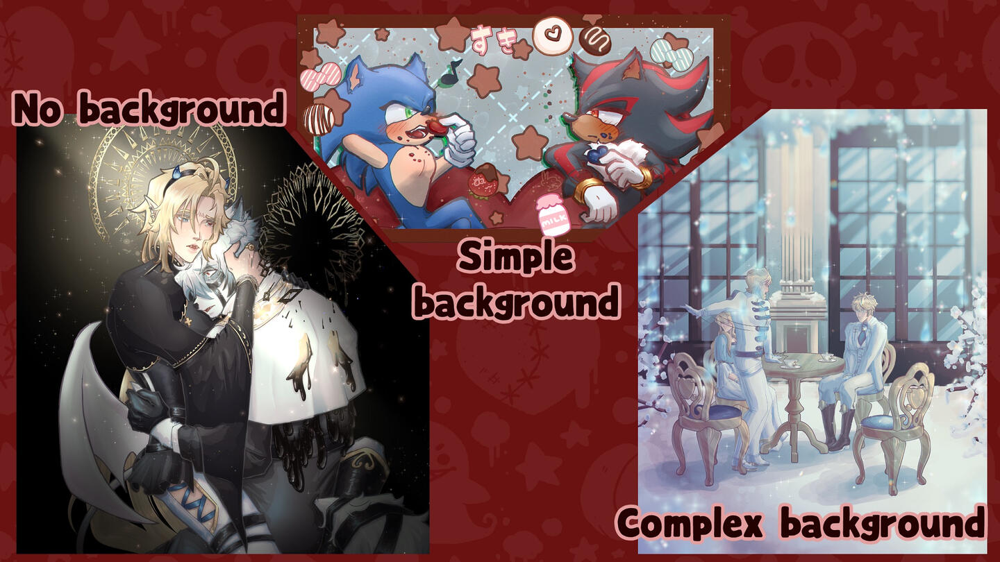 Complex background: +25 USD.Detailed characters: +20 USD.